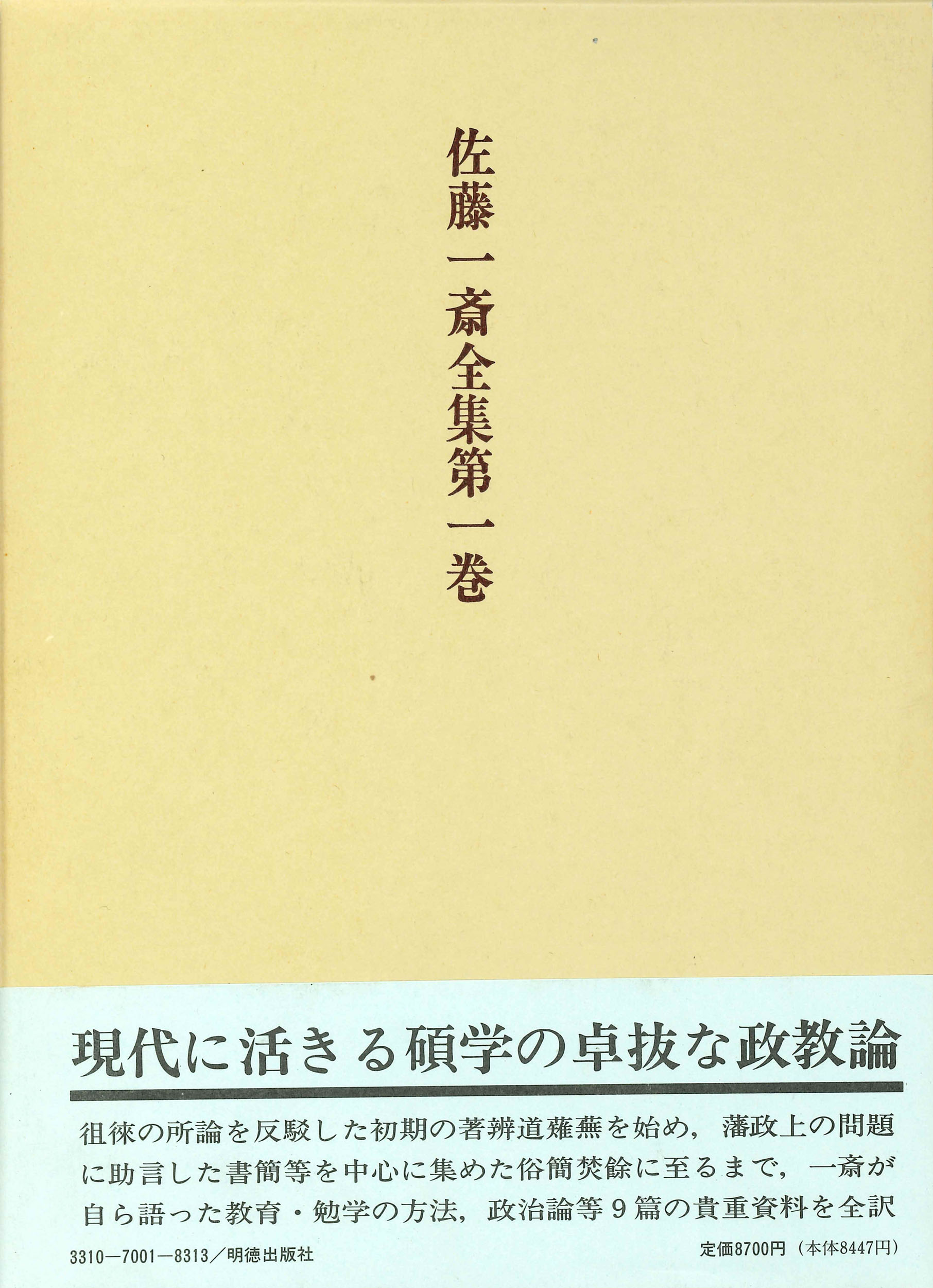 重職心得箇条・俗簡焚餘・初学課業次第・白鹿洞書院掲示問・哀敬編等九篇の政教に関する著作を収録。一斎の教育や学問・人となりを知る上で貴重な資料を全訳する。