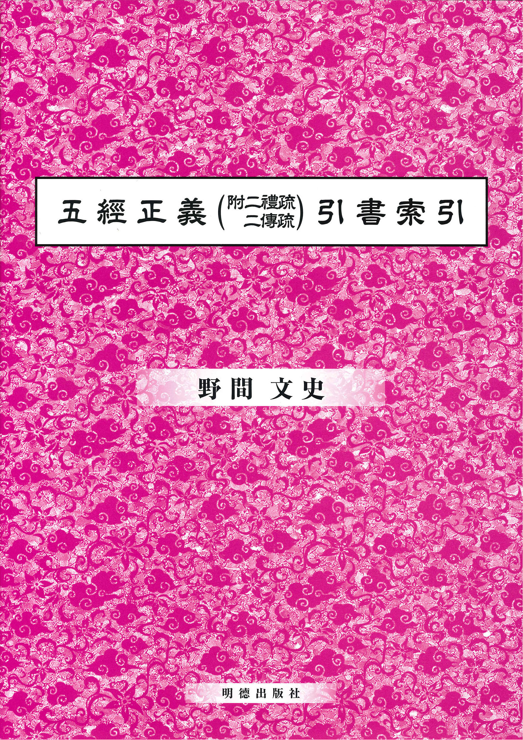 本書は唐の孔穎達奉勅撰『五経正義』、即ち『周易正義』『尚書正義』『毛詩正義』『禮記正義』『春秋正義』そして唐の賈公彦『儀禮疏』『周禮疏』さらに(傅)唐の徐彦『公羊傳疏』、唐の楊士勛『穀梁傳疏』の「引用書籍人名索引」である。この内『穀梁傳』のみ、晉の范甯『穀梁傳集解』も併せているため、『穀梁傳注疏引書索引』と題している。