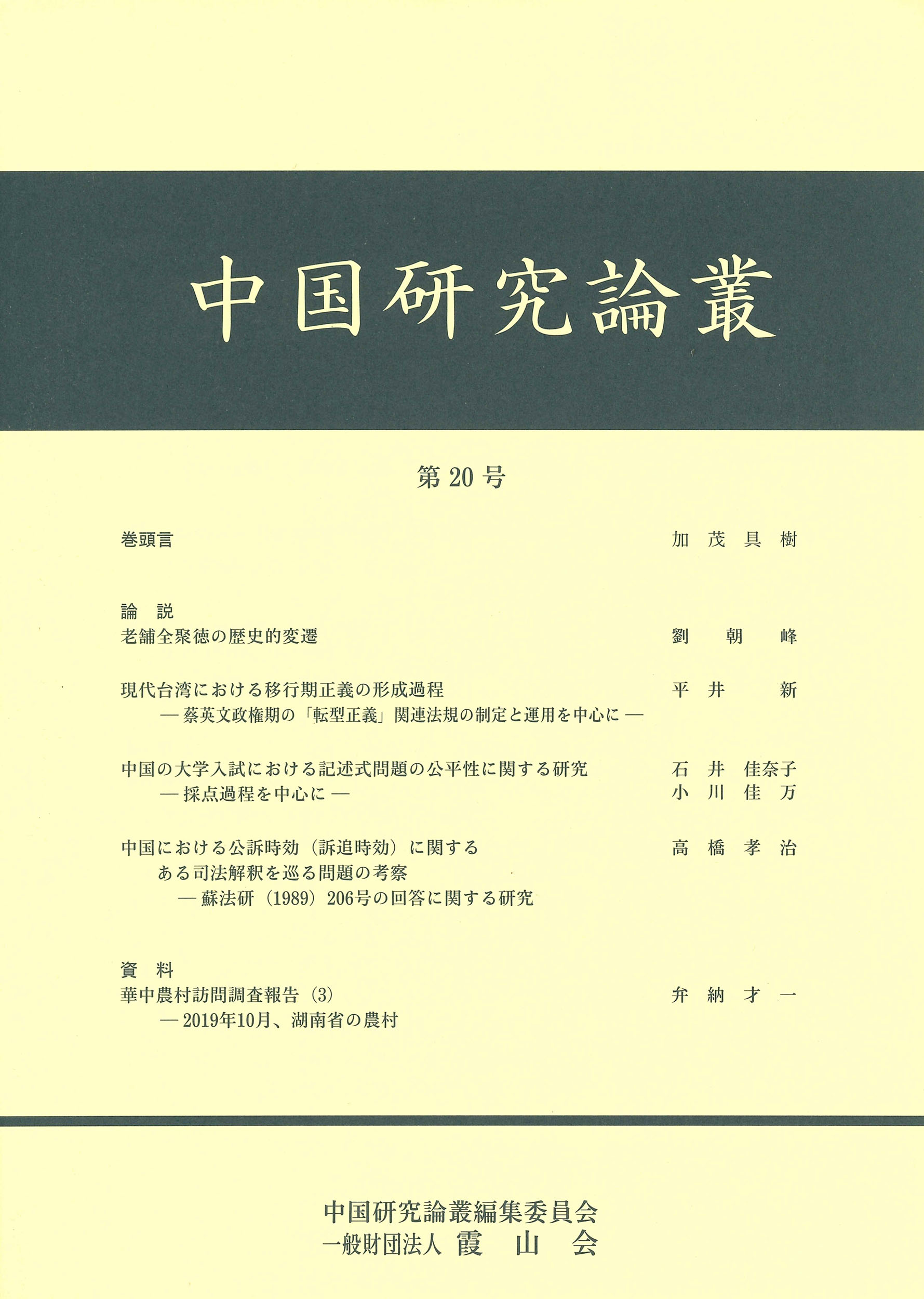 著者 中国研究論叢編集委員会(チュウゴクケンキュウロンソウヘンシュウイインカイ)