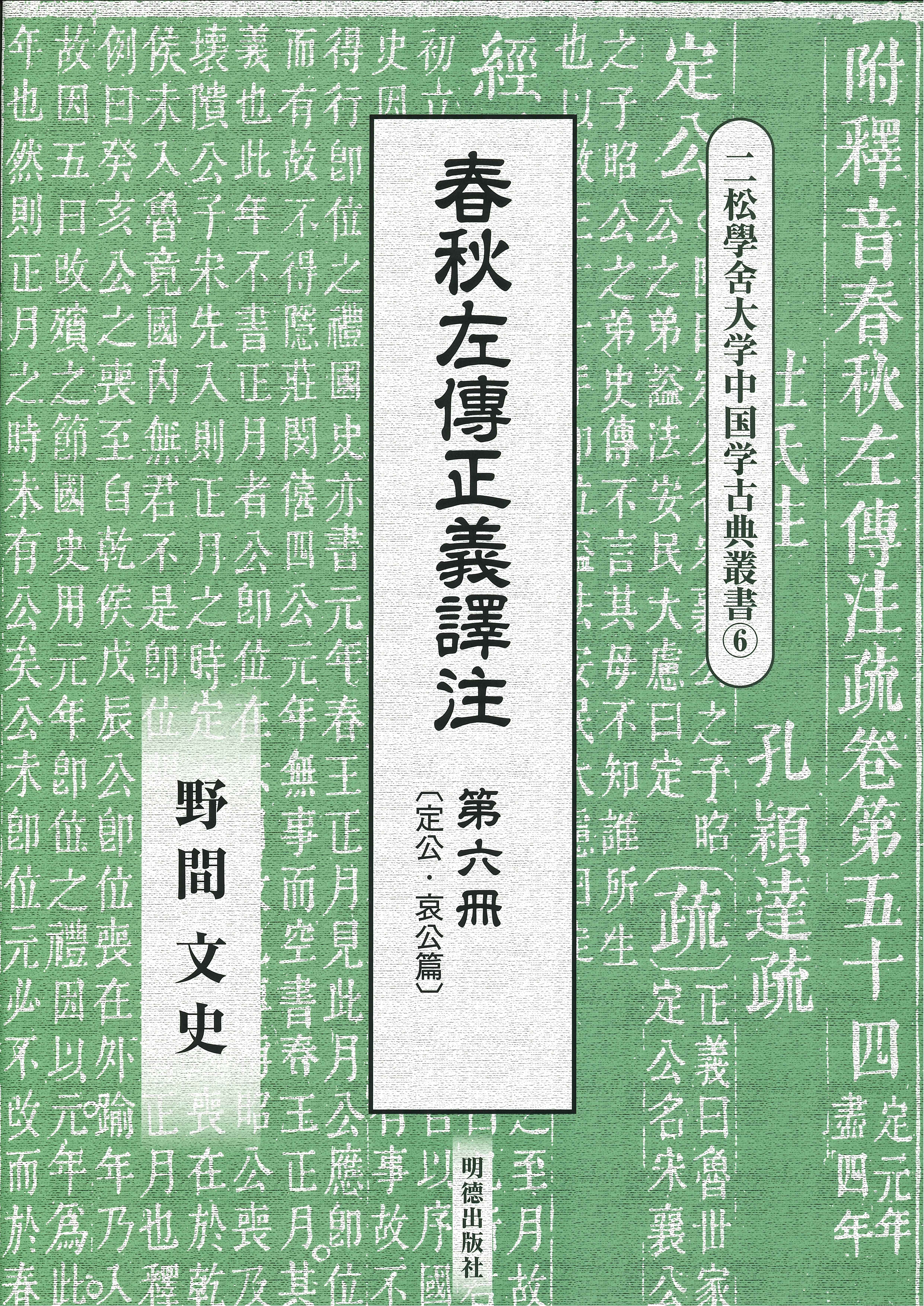 本書は孔穎達奉勅撰《春秋正義》を日本語訳し、 譯注を施したものである。 翻訳文の理解を助けるために経文・伝文・注文を附している。 全六冊。第六冊は定公・哀公篇。