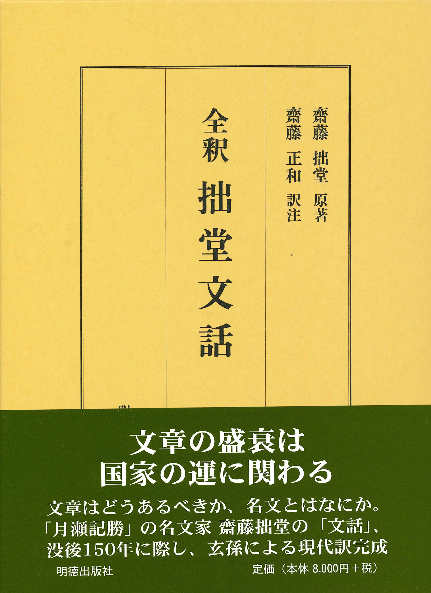「月瀬記勝」の名文家、齋藤拙堂の「文話」、没後150年に際し、玄孫による現代語訳完成。