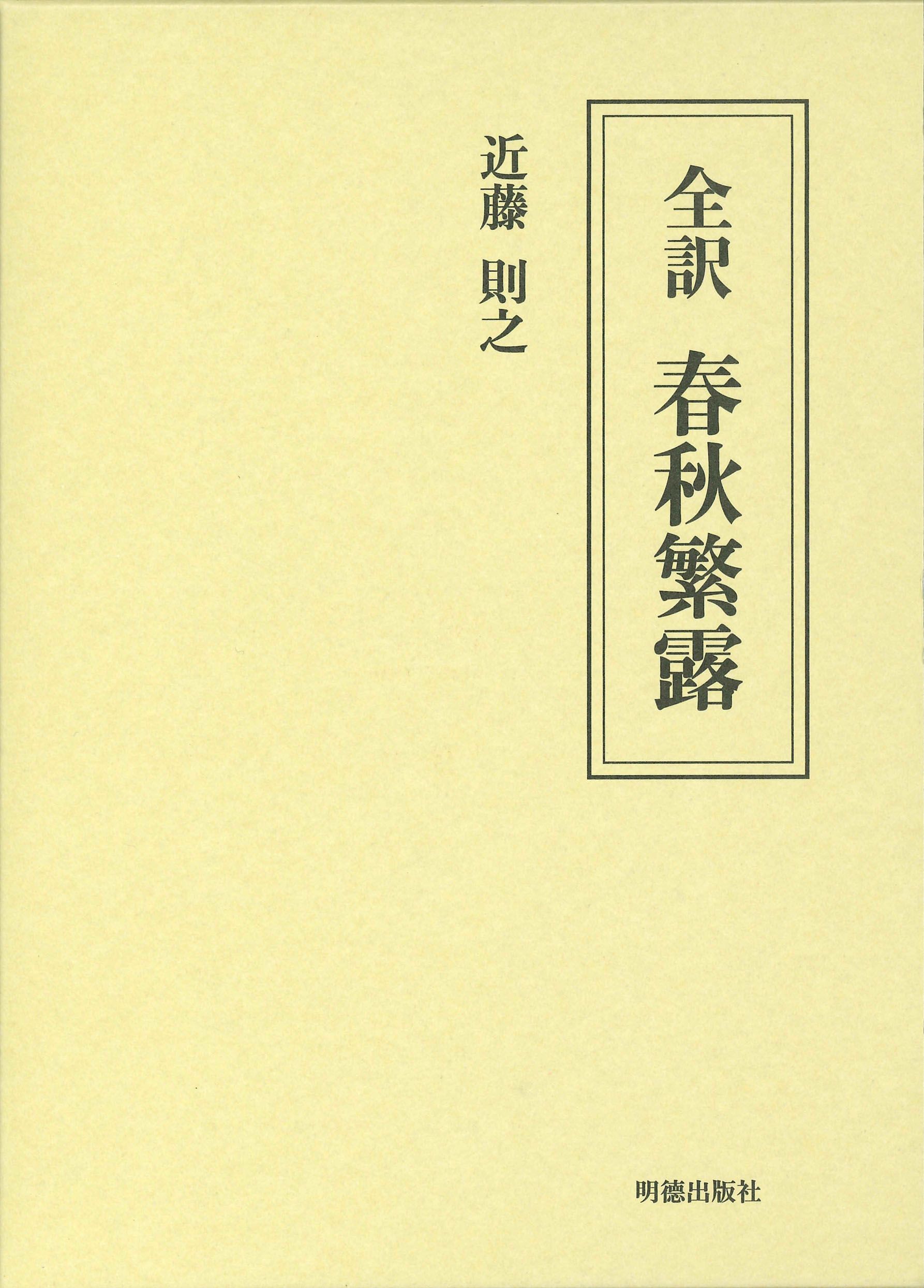 本訳書は『春秋繁露』十七巻を主に蘇輿撰『春秋繁露義証』(宣統二年、一九一〇年刊)をもとにして現代日本語訳したものである。(以下、『春秋繁露義証』の書自体を呼ぶときは『義証』と称し、『義証』所載の『春秋繁露』本文を指して言う時は蘇輿本と称する。)また、本訳書では『義証』に加えて、劉師培の『春秋繁露斠補』三巻(『劉申叔先生遺書』三十一、民国元年、一九一二年)の所説も参考にしている。 (本書「凡例」より)