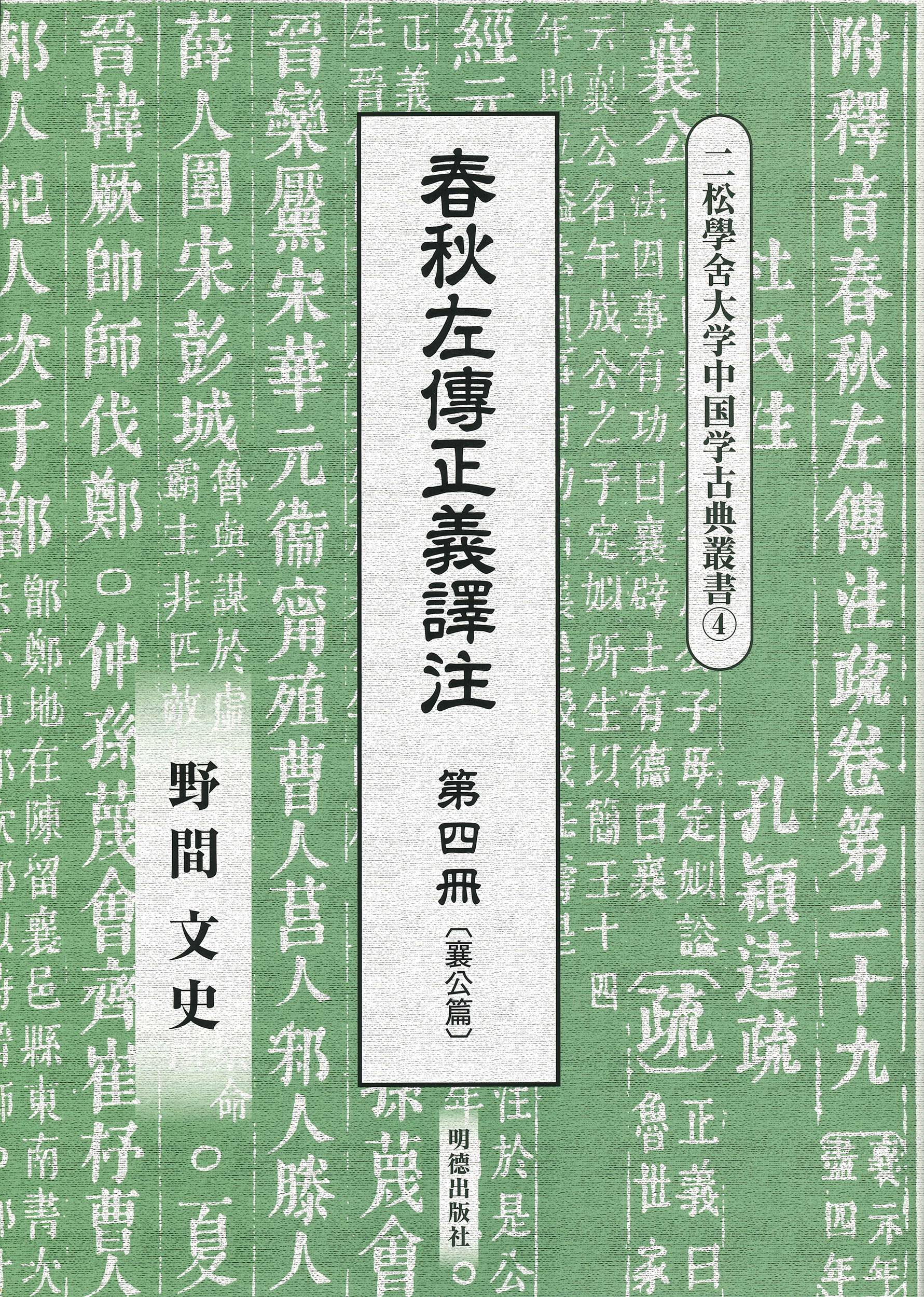 書は孔穎達奉勅撰《春秋正義》を日本語訳し、 譯注を施したものである。 翻訳文の理解を助けるために経文・伝文・注文を附している。 全六冊。