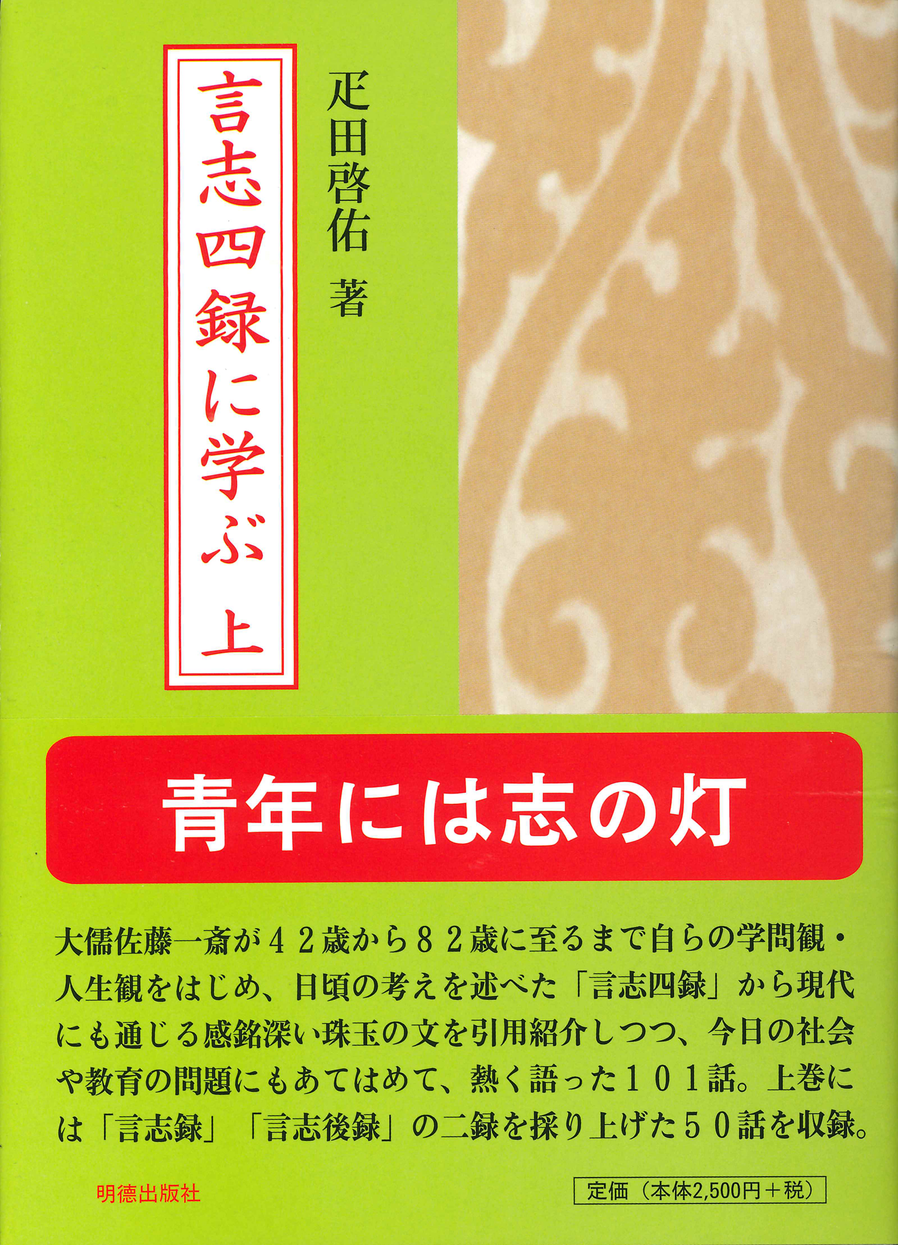 大儒佐藤一斎が自らの学問感・人生観をはじめ、 日頃の考えを述べた 「言志四録」 から感慨深い珠玉の文を引用紹介しつつ、 今日の社会や教育の問題にもあてはめて熱く語った一〇一 話。