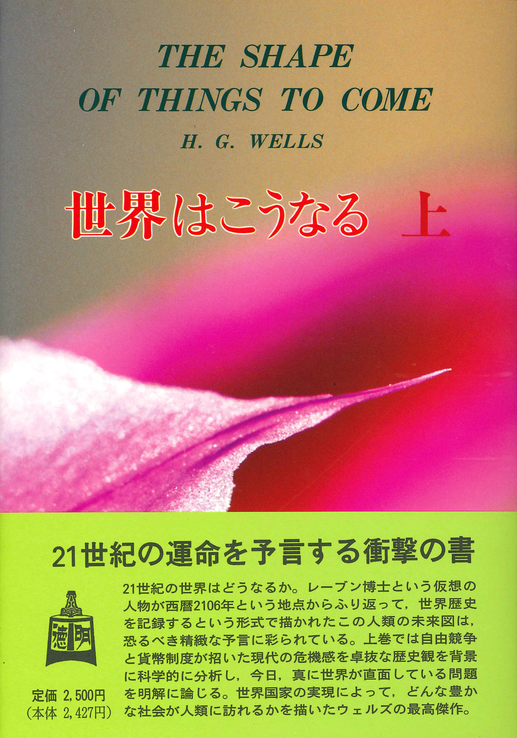 定価 2,669 円(税込) 著者 ウェルズ,H.G. 翻訳 吉岡 義二(ヨシオカ ヨシジ) 四六判上製 525頁 ISBN978-4-89619-125-7 アマゾン 楽天 版元ドットコム ・内容紹介 21世紀の世界はどうなるか。レーブン博士という仮想の人物が西暦2106年からふり返って、世界歴史を記録するという形式で描かれたウェルズの最高傑作。上巻は、現代の危機感を明解に論じる。